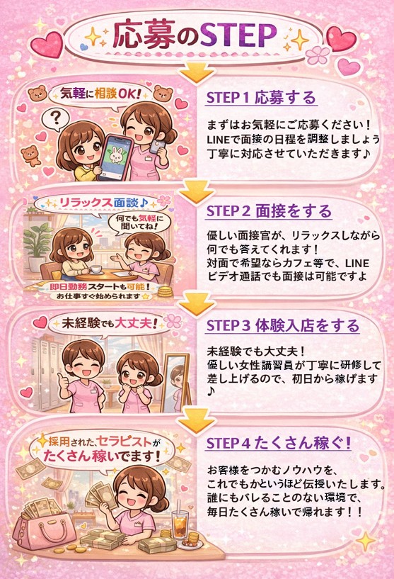 | 仕事内容 | メンズエステ業務 ・オイルマッサージ ※性的サービスの提供は禁止です |
